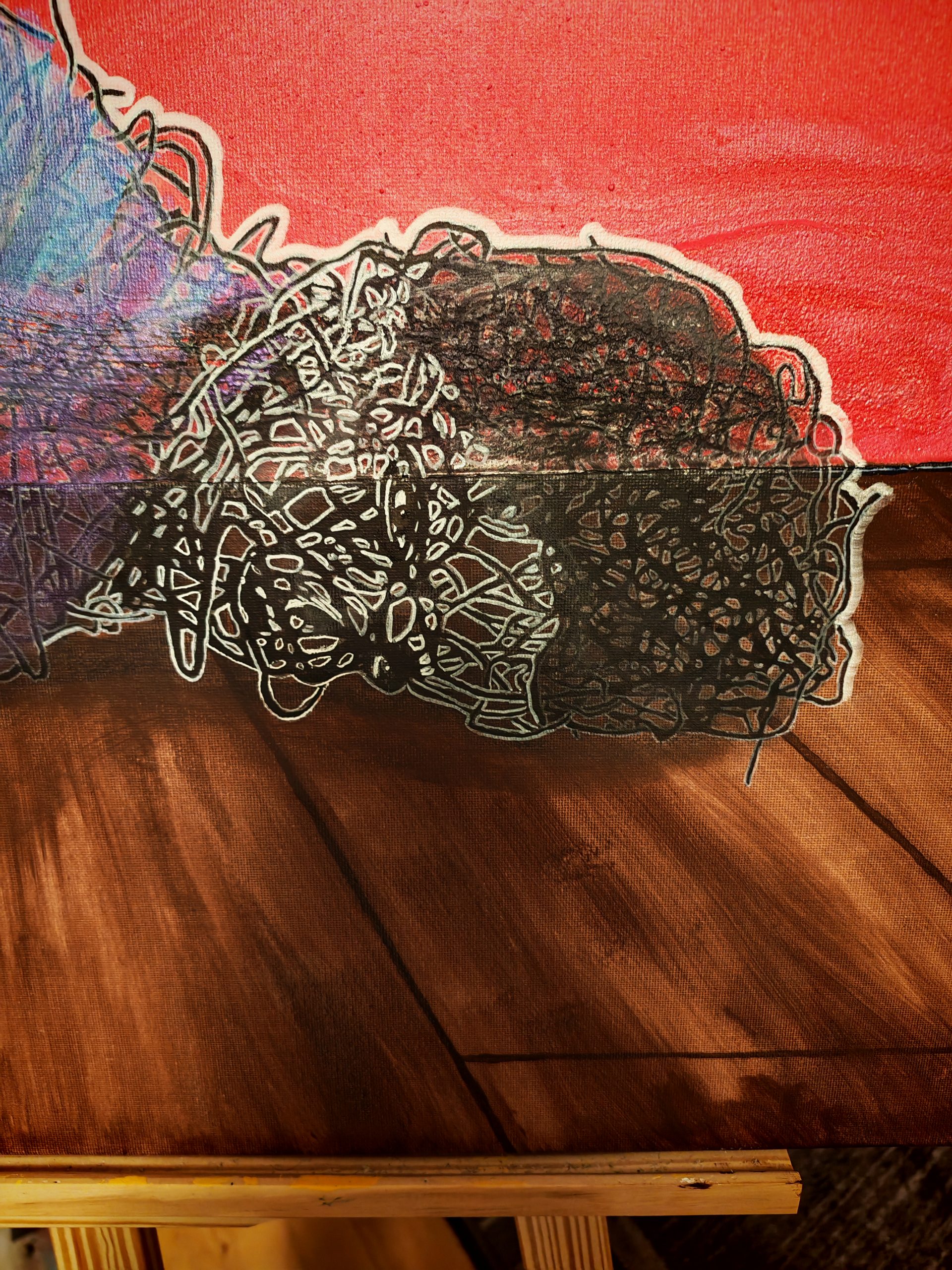 Dieser Prozess hilft mir beim Loslassen von vorgegebenen Mustern, Erwartungen und eingefahrenen Ansichten. Als betrachtende Person meiner Werke erleben Sie einen Teil meiner Leidenschaft und des inneren Kampfes gegen den Perfektionismus.